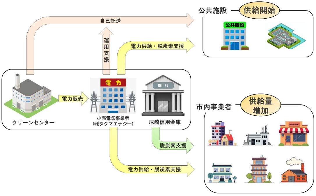 尼崎信用金庫(本店 尼崎市開明町3-30 理事長 作田 誠司)は、「尼崎市エネルギー地産地消促進事業」について尼崎市(本庁 尼崎市東七松町1-23-1 市長 松本 眞)・株式会社タクマエナジー(本社 尼崎市金楽寺町2-2-33 代表取締役社長 西村 賢一)と連携協定を締結しましたのでお知らせします。 1.事業の概要 尼崎市、NTTグループと実施中の「尼崎市エネルギー地産地消促進事業」を令和8年4月から一部拡充し、クリーンセンター第2工場の廃棄物発電による余剰電力を「CO2排出量ゼロの電気」として従来の市内事業者に加え、一部の公共施設に供給する事業です。 2.協定の内容 (1)令和8年4月1日以降のクリーンセンターの余剰電力を活用したエネルギーの地産地消の取り組みに関すること (2)上記以外の再生可能エネルギーの地産地消に関すること (3)脱炭素経営に取り組む市内事業者への支援に関すること (4)省エネルギーの推進に関すること (5)人的・知的・物的資源の活用に関すること (6)その他尼崎市エネルギー地産地消促進事業に関すること <令和8年度からの尼崎市エネルギーの地産地消促進事業イメージ> ![]() 3.当金庫の役割 当金庫は、本協定締結により、脱炭素経営に取り組む市内事業者に本事業を積極的に周知していくとともに、お取引先の企業価値向上や持続可能な社会の実現に取り組んでまいります。 |